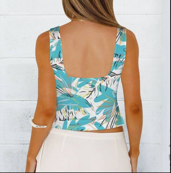 Square Neck Backless Ruched Side Split Crop Tank Tops