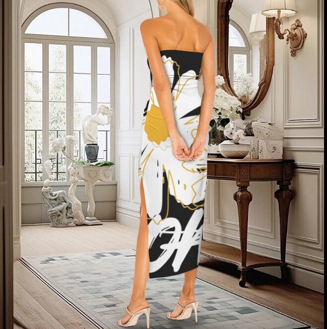 Strapless Tube Top Slit Maxi Bodycon Party Dress
