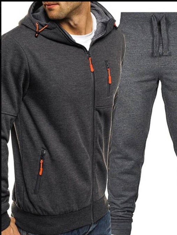 Classic Comfort: Men's Zip Up Hooded Top & Pants