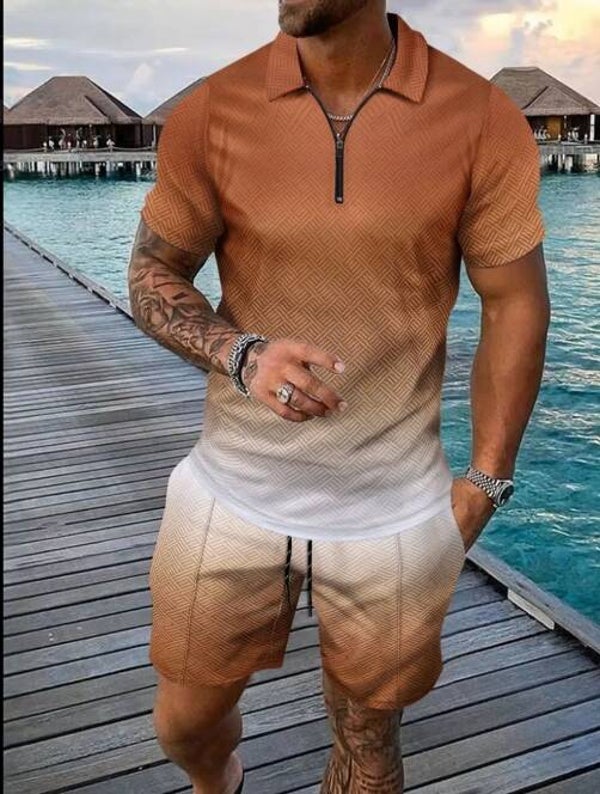 Elevate your casual wardrobe with our Men's Full Size Gradient Collared Neck Top and Shorts Set. This stylish two-piece ensemble features a basic yet trendy design, complete with a comfortable drawstring for a customizable fit and convenient pockets for all your essentials. Made from 100% polyester, the fabric offers a slightly stretchy feel for all-day comfort. Perfect for lounging at home or running errands, this set is easy to care for—simply machine wash cold and tumble dry low. Embrace effortless style and comfort with this must-have addition to your collection!
