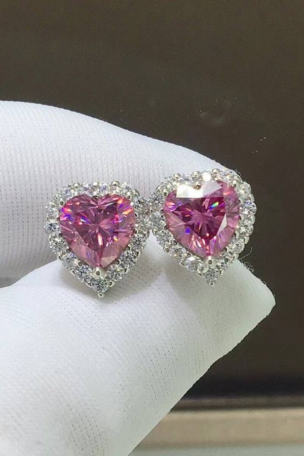 Elevate your jewelry collection with our stunning 2 Carat Heart-Shaped Moissanite Earrings, beautifully showcased in a minimalist flat lay studio style. Crafted with precision, these earrings feature dazzling heart-shaped moissanite stones that shimmer in various hues depending on the lighting, complemented by exquisite zircon accent stones for an added touch of brilliance. Polished to perfection, these earrings are not just a statement piece but a symbol of love and elegance. Each pair comes with a certificate of stone properties for your peace of mind and a limited warranty to ensure your satisfaction.