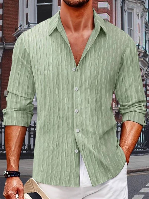Refine your wardrobe with the MasteryMan Button-Up Long Sleeve Shirt, tailored for both comfort and class. Featuring a subtle geometric texture and lightweight feel, this basic-style shirt is crafted from a breathable blend of 96% polyester and 4% spandex for a slightly stretchy fit that moves with you.