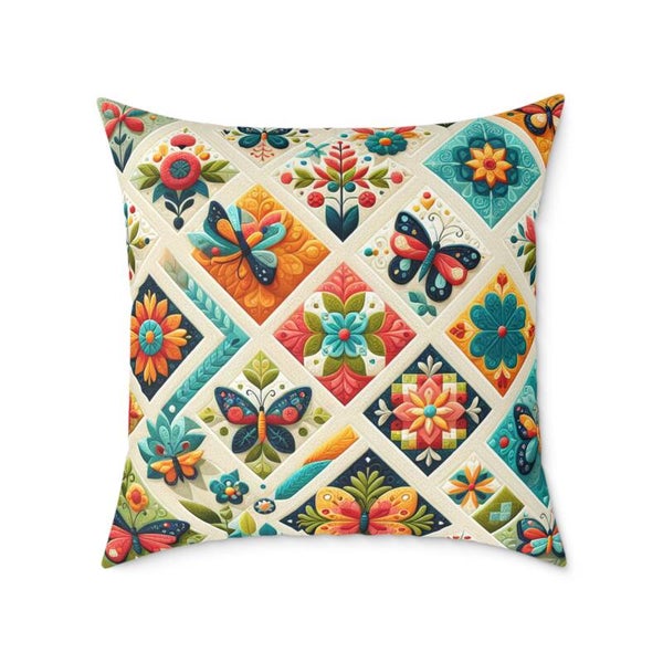 Bohemian Floral Square Poly Canvas Pillow - Cozy Home Decor