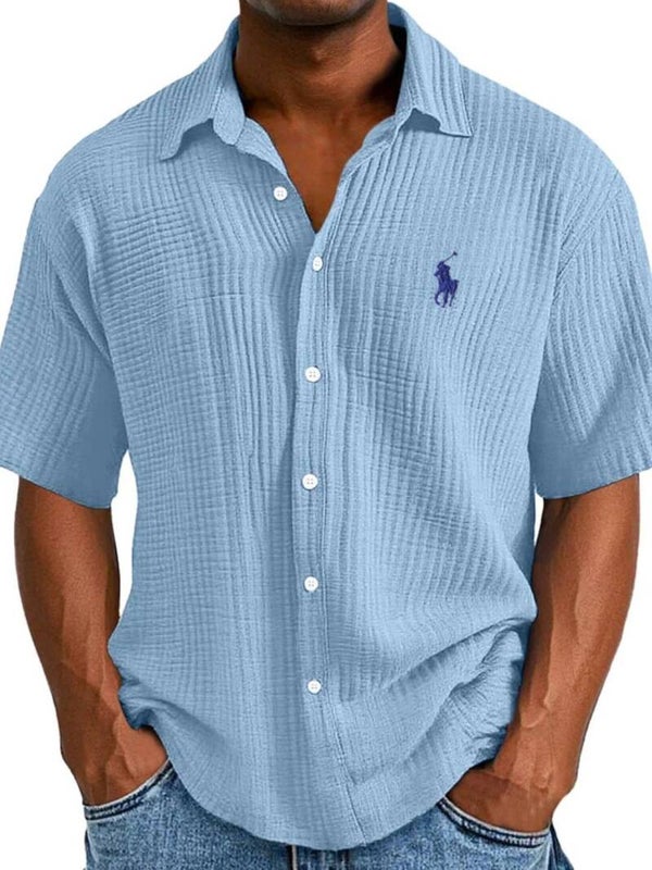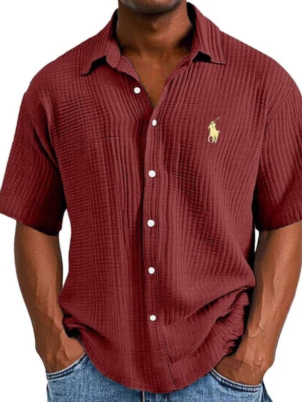 This Men's Button-Up Short Sleeve Shirt blends everyday comfort with clean, classic style. Designed with a slightly stretchy cotton-poly blend, it offers breathability and ease of movement for all-day wear. Whether you're dressing it up or keeping it casual, this shirt is a must-have staple — available in sizes Small to 5XL for a comfortable fit for every body.