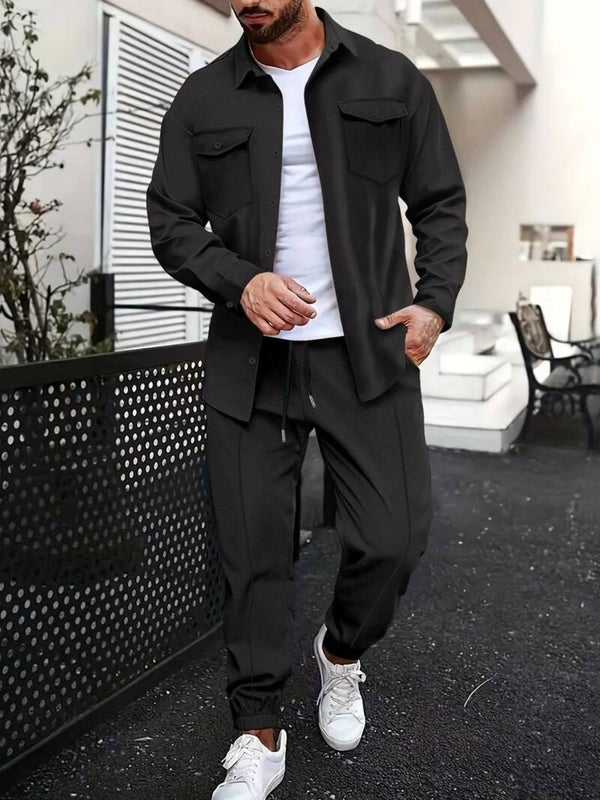 Upgrade your downtime with the Everyday Luxe Lounge Set, a sleek two-piece featuring a button-up long sleeve top and matching pants. Made from soft, slightly stretchy polyester, this set blends comfort with a clean, put-together look — perfect for relaxing at home or casual days out. Available in sizes S to 3XL for a relaxed, easy fit.