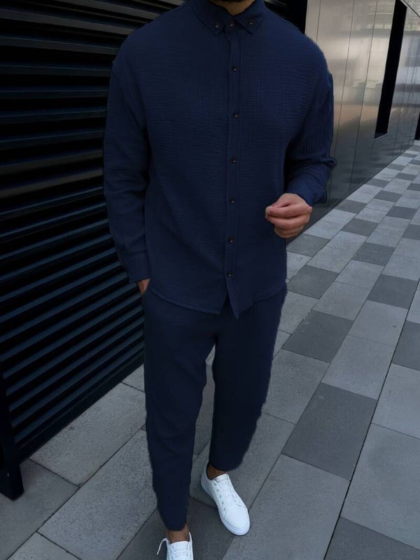 Command attention with clean lines and timeless comfort in the Mastery Man Men's Button-Down Long Sleeve Shirt and Pants Set. This two-piece essential delivers a confident, put-together look with a relaxed edge — perfect for work, casual outings, or evenings out.