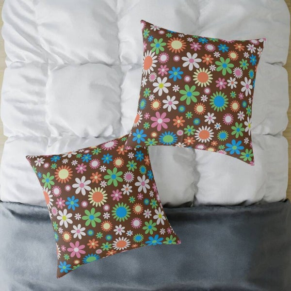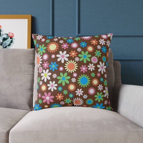 Colorful Floral Square Poly Canvas Pillow - Cozy Home