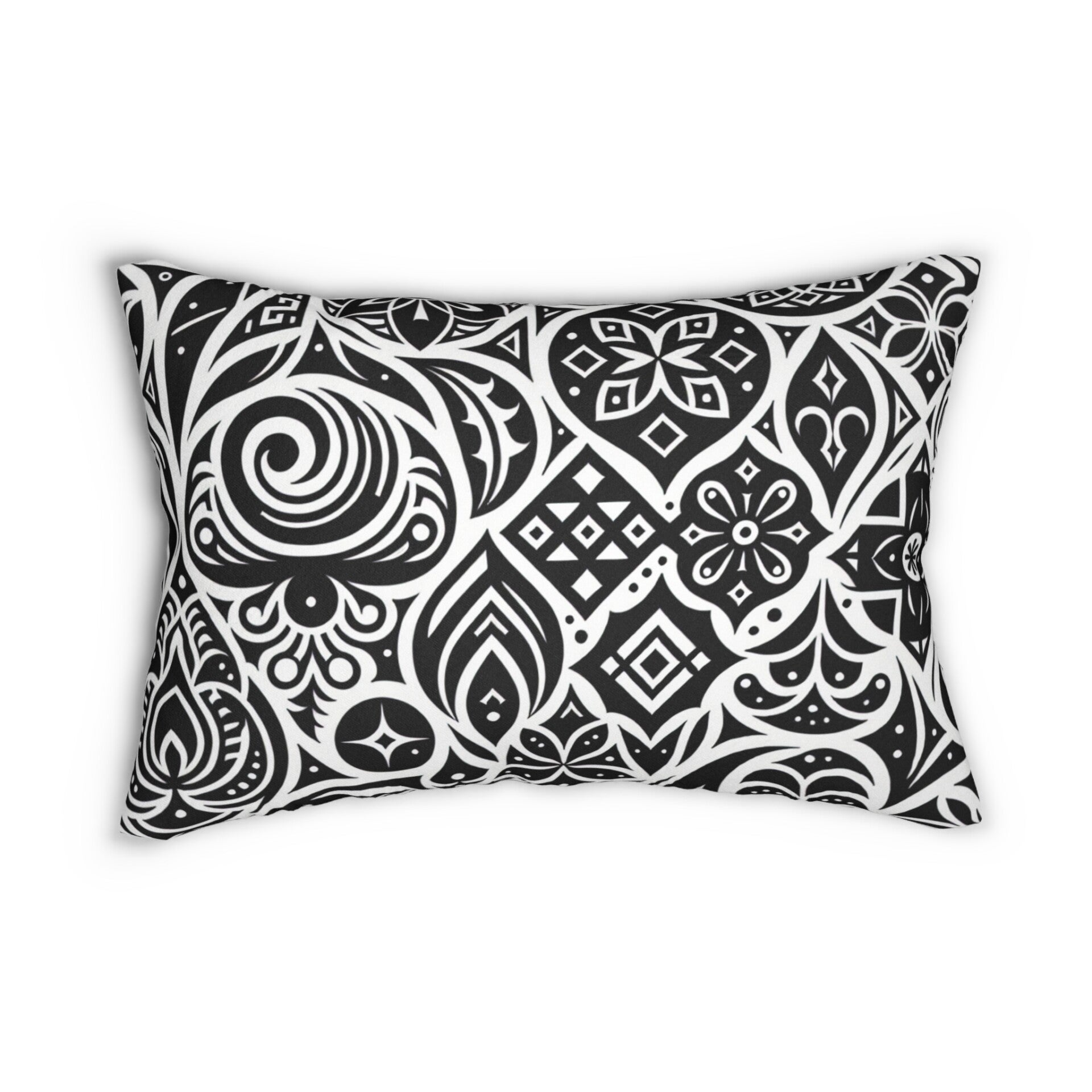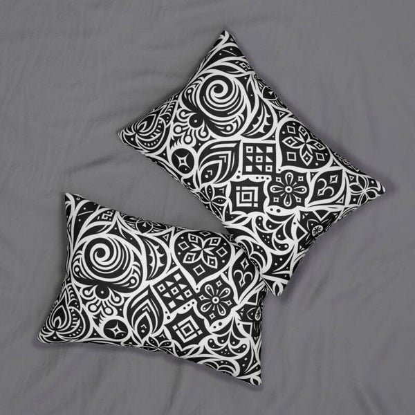 Black and White Patterned Lumbar Pillow, Boho