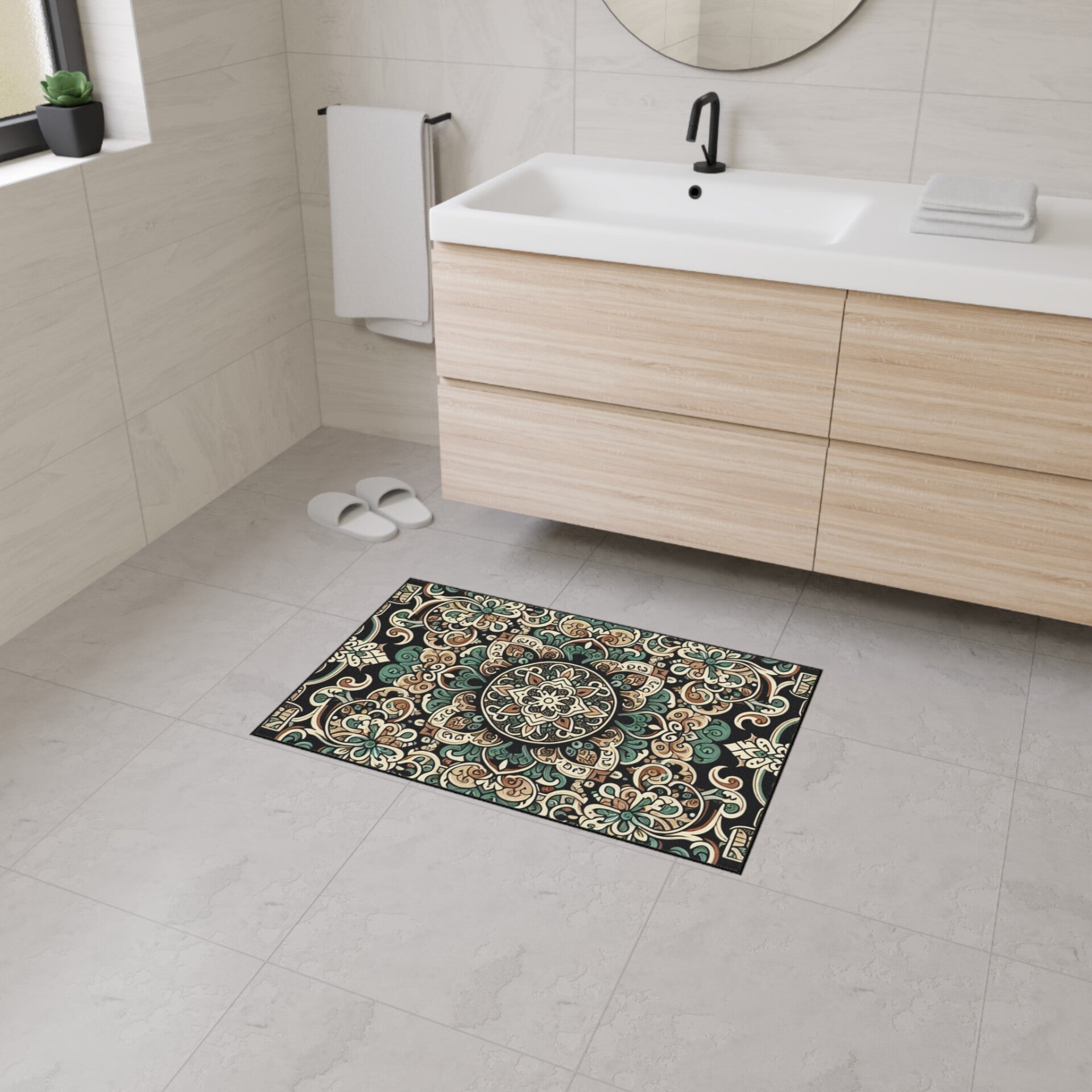 A richly detailed tapestry of teal, sand, and espresso hues, this rug radiates elegance with its intricate mandala centerpiece and floral accents—perfect for grounding your space in bold, artistic style.