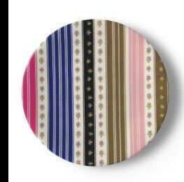 Add a cozy, nostalgic touch to your dining space with the Cottage Stripe Bone China Plate. Featuring delicate floral accents and soft, woven-style stripes in pink, blue, taupe, and cream, this charming design evokes vintage farmhouse aesthetics with a modern twist.