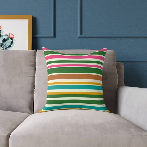 Add a splash of color and personality to your living space with this vibrant Square Poly Canvas Pillow. Its lively striped design brings a playful yet cozy atmosphere, perfect for brightening up any couch or bedroom. Whether you're looking to enhance your home decor or find a unique gift for friends and family, this pillow fits effortlessly into any setting. Ideal for both casual and festive occasions, it’s a great choice for housewarmings, birthdays, or simply treating yourself. Embrace comfort and style in one beautiful package!