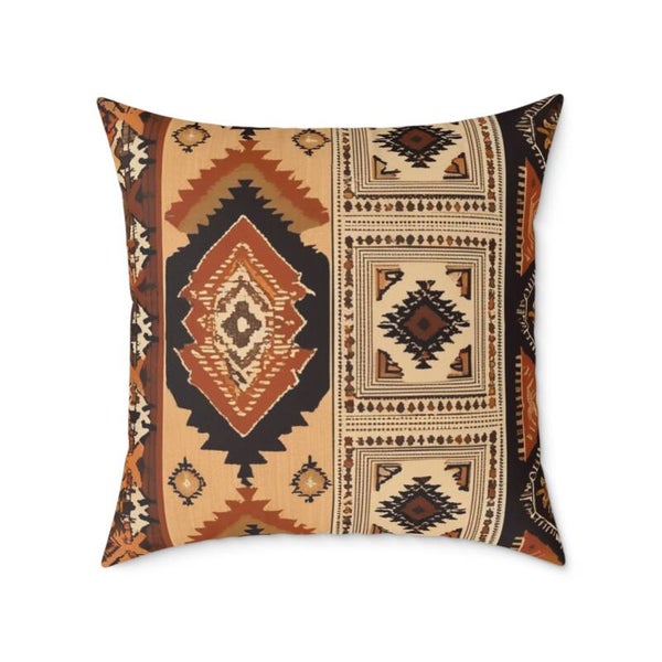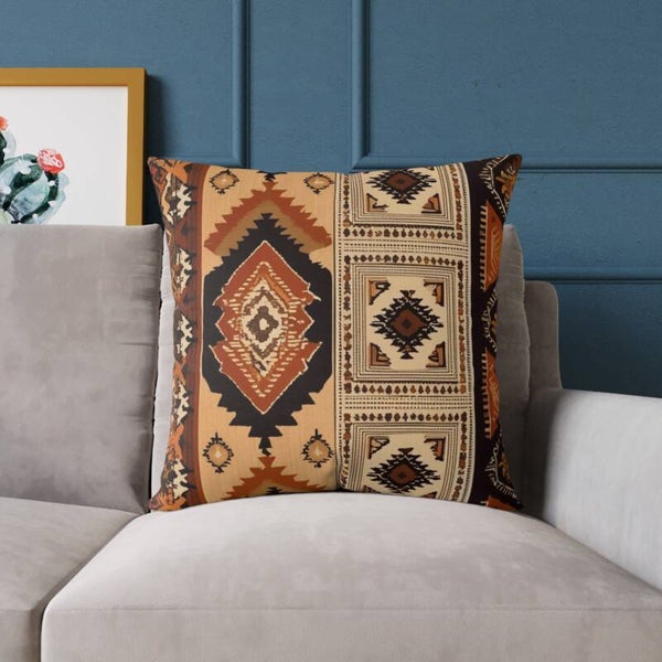 Bohemian Square Canvas Pillow Tribal Design Earth Tone