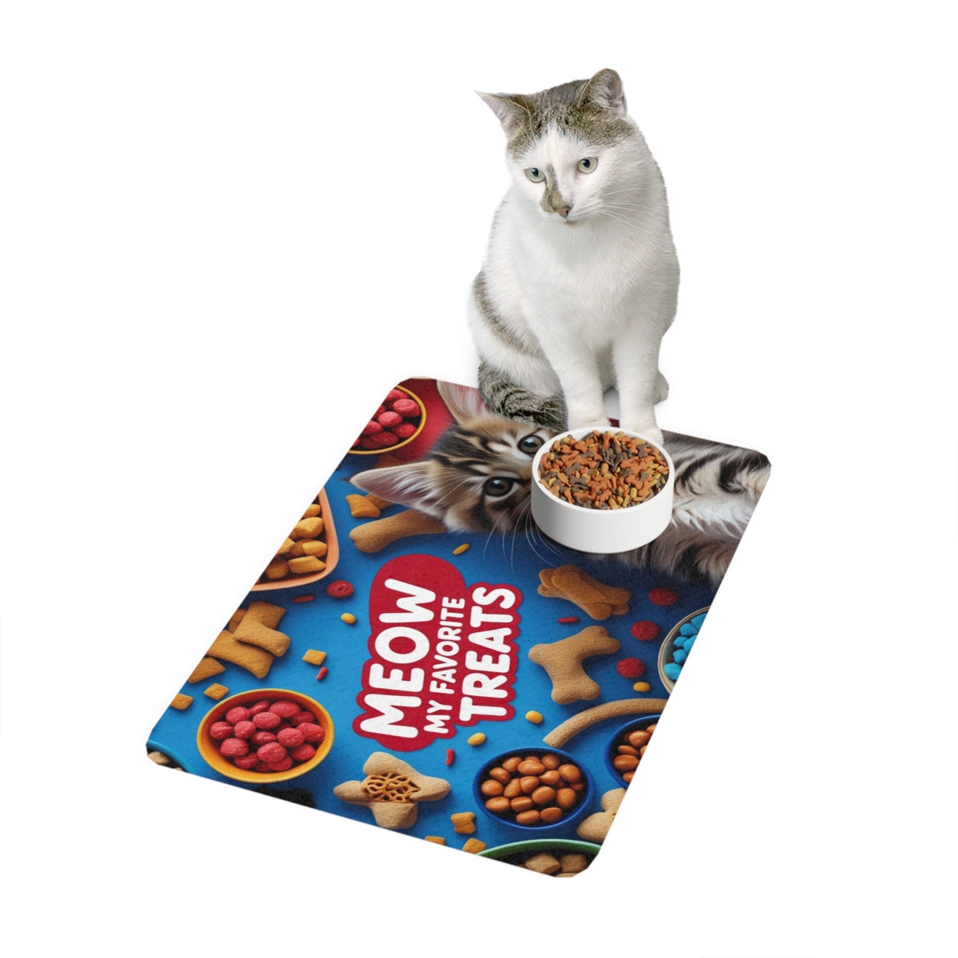 Meow My Favorite Treats Feeding Mat, Cat Bowl Mat